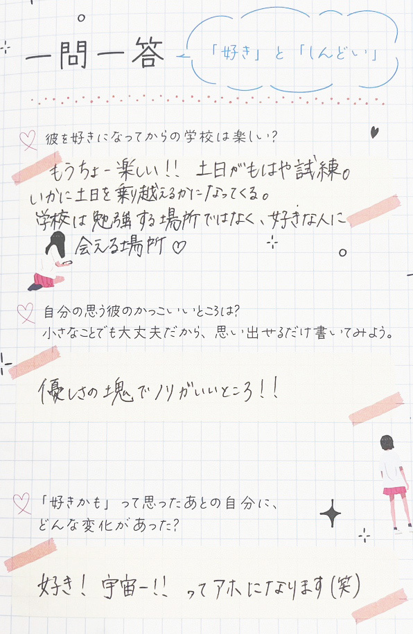 質問の回答を書き込むことで、自分でも気が付かなかった自分の気持ちを見つけることができるようになっています。