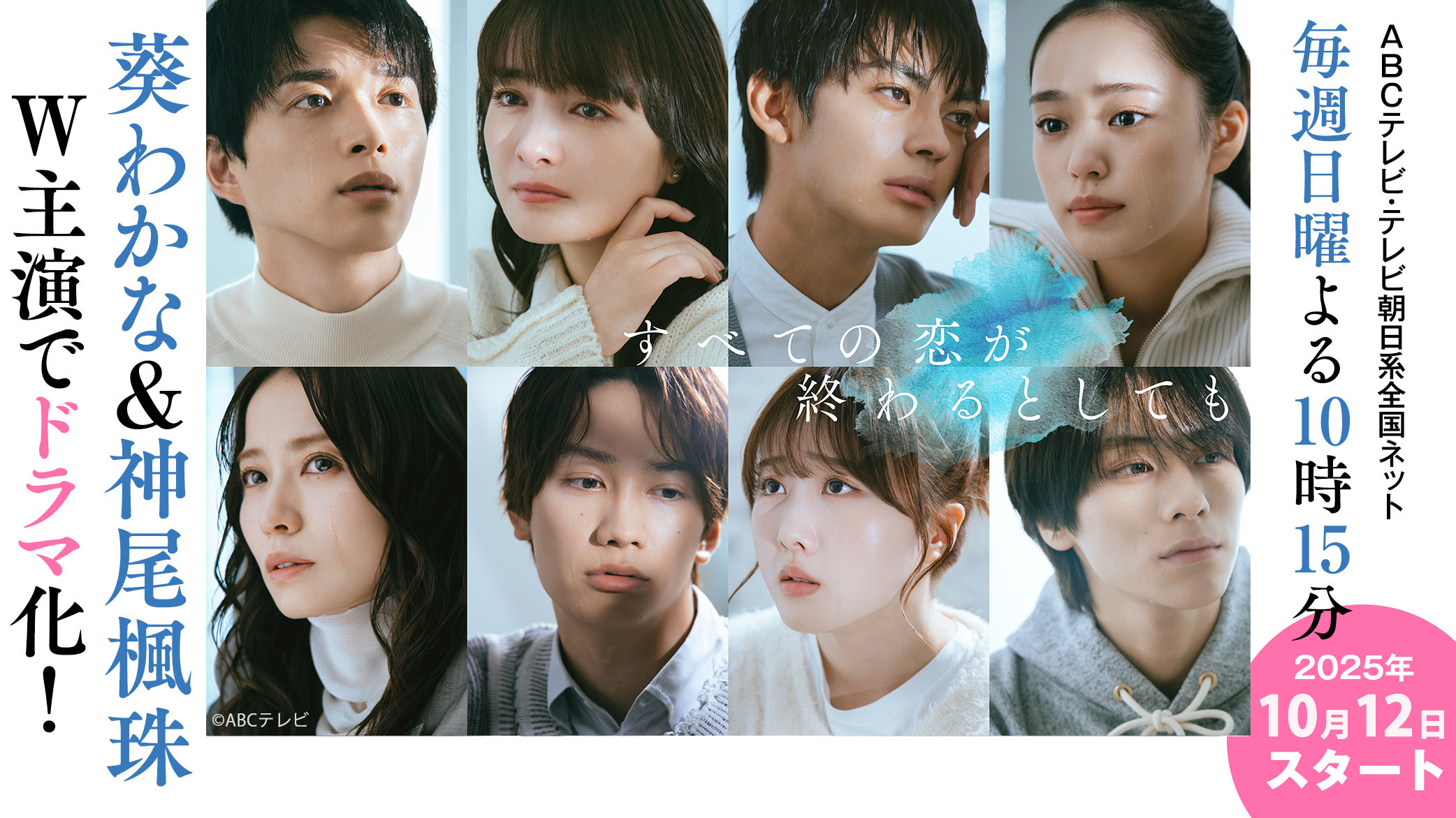 旧Twitter時代に書いていた1投稿で読み切れる140文字の物語が、書籍化を経てついにドラマになって地上波へと羽ばたくことになりました。『すべての恋が終わるとしても』、通称『すべ恋』。本作を原作として、脚本家の三浦さんがさらに素敵なストーリーを組み立ててくださり、葵さんや神尾さんをはじめとしたキャストの方々に、文章では表現しきれない動きや彩りを、ドラマという形で昇華していただいています。ドラマという映像作品として素敵なものに仕上がっていると思いますので、毎週皆様と一緒に楽しめたら嬉しいです。ぜひご期待ください。