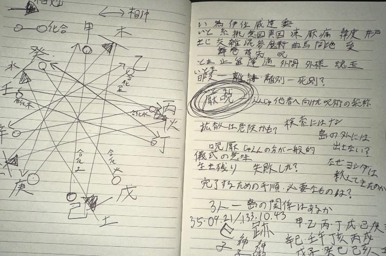 忠告に感謝しつつ、資料としてそれらの写真を何枚か撮らせてもらう。手塚や俺と同じように、草間という男も《いとまじ》の意味を追っていた。そしてどうやら彼は《いとまじ》の意味を《厭呪》すなわち、呪いと解釈して行方をくらませた。