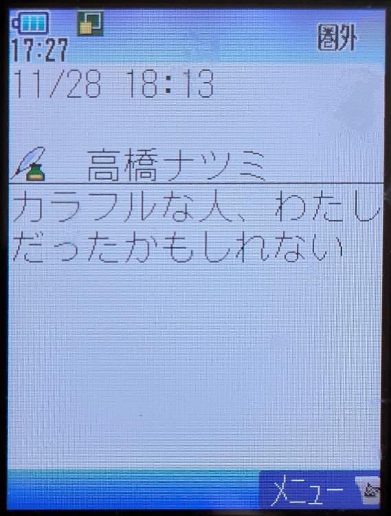 二〇■■年当時、カナミが使用していた携帯電話は二つ折りのいわゆる「ガラケー」だ。スマートフォンは画面を起動させるたびに認証が必要な設定にしている人がほとんどだろう。しかし折りたたみ携帯を利用していた当時、パスワードを設定している人は多くなかった。カナミもパスワード設定をしておらず、容易に中身を見ることができた。昔の携帯電話が自室から持ち出されていることに、カナミは気がつかなかったようだ。発見の翌々日に返却したため、わたしに内部データを確認されていることにも気がついていないかもしれない。(※2)