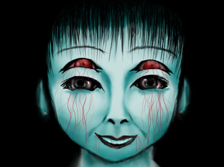 彼女はぐっと目を近付けた…、腐蝕され死んだ魚より濁った目。乾燥した皮膚が裂ける音、眉の上に引かれた鮮血のアイラインがミチミチと割れていく。もはやその音も彼の耳には届かない。キョロキョロと真新しいガラスの様な目が自分の目を射る…。