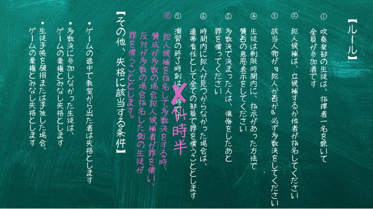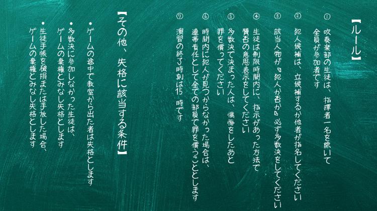 ・多数決に参加しなかった生徒は、ゲームの棄権とみなし失格とします