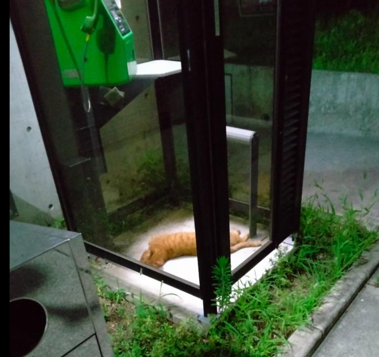 公衆電話に棲みついている猫ちゃんたち。リラックスモードなので、なるべく驚かせないようにしてあげてくださいね。それでは、またー。