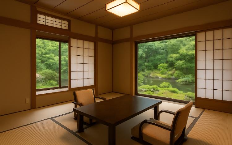 いずれのお部屋も畳敷きで、広縁からは四季折々の庭園をご覧いただけます。