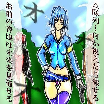 チンピラ連中の輪の中で、青い髪のツーテールの女子が蹲っている。