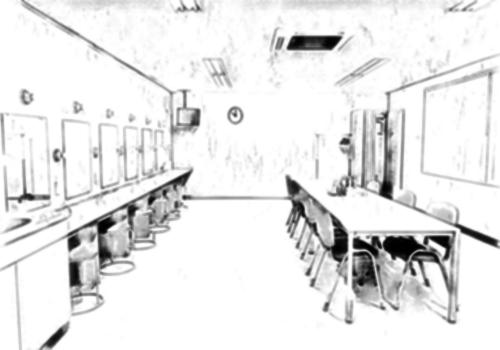 手狭な特設ルームで二人の男がテーブルを挟みパイプ椅子に腰掛けている。