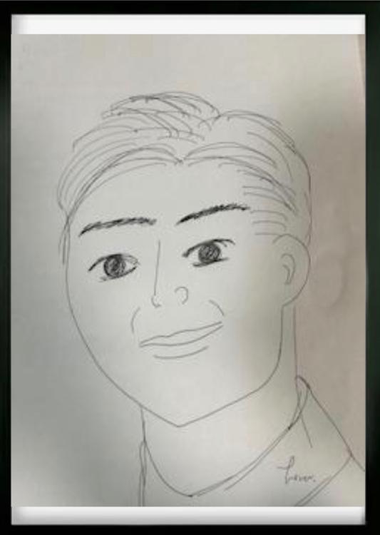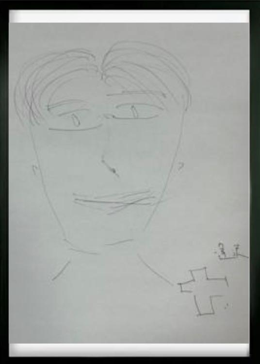 描き終わったら、その似顔絵の上に、フルネームであなたの名前をしっかり記述します。