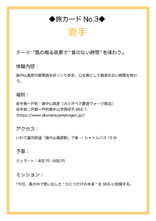 そして、案の定出てきた『旅カードNo.3』に書かれていた行き先が、岩手県にある『奥中山高原』という場所だったのだ。