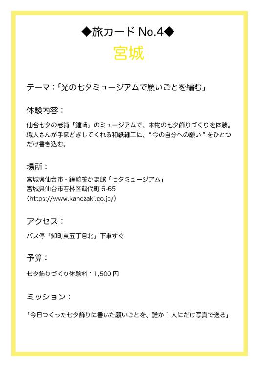 岩手県を出た次の日、温泉のロッカーで見つかった『旅カードNo.4』には宮城県仙台市にある『鐘崎笹かま館七夕ミュージアム』というところが目的地として書かれていた。そこで私たちは七夕飾りづくりをした。