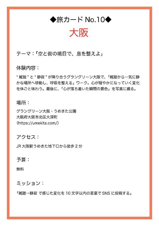 京都での奇跡のような一日を終えた翌日、私たちは鴨川での散歩中に河川敷で拾った『旅カードNo.10』に書かれていた次の目的地、大阪へとやってきた。