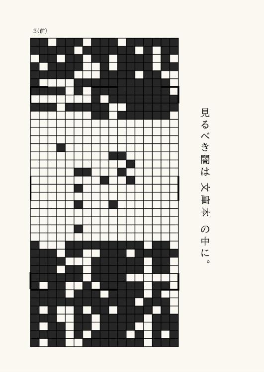 今まで、すべての謎において、読まない黒マスは隠されるか切り取られるか灰色基準で白に分類されるか、ともかくも完全に答えのマス格子の配列から削除されてきていた。