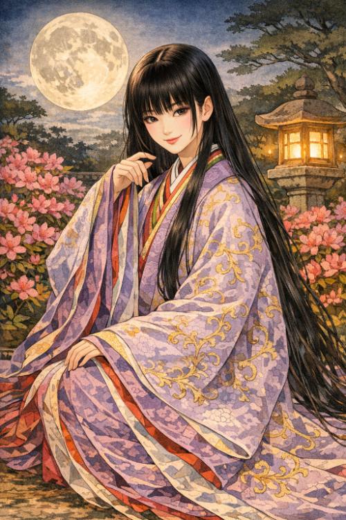 今どき、このような姿を恥ずかしくもなくしている者はいない。明らかに平安貴族のいでたちである。いかに夏の暑い盛りとはいえ、まるで『源氏物語』の中から抜け出してきたようであった。