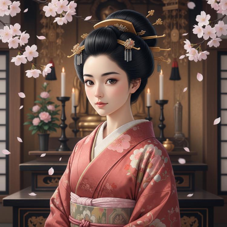 やや面長の顔立ちに、白磁を思わせるきめ細やかな肌。血の気は薄いが、それがかえって尼僧という立場にふさわしい清澄さを際立たせている。眉は細く柔らかく弧を描き、切れ長の目は伏せられているときでさえ、内に秘めた感情の揺らぎを隠しきれない。強く見返すことはなく、どこか遠慮がちでありながら、ふとした瞬間に芯の強さをのぞかせる眼差しであった。