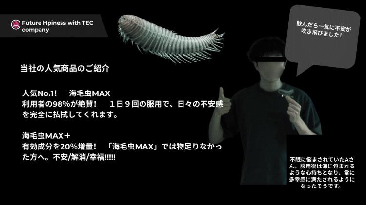 背景に写っている人々も社員なのだろうか。皆囚われているようにも見える。