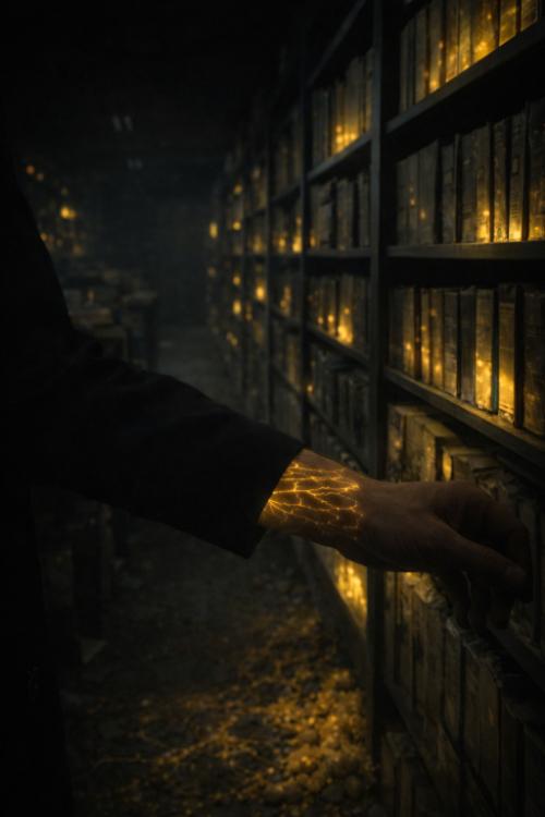 地下三階の資料室。外界から隔絶されたこの冷たい壁の向こう側から、今まで気づかなかった音が聞こえ始めた。何万、何億という微細な細胞が、壁を叩くような、あるいは喉を 鳴らすような低い震動を立てている。袖口からのぞく皮膚の下に、細い、黄金色の「脈」 が、心拍とは異なるリズムでかすかに蠢いているのが見えた。