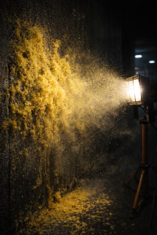 [暫定対処マニュアル(内部配布版)抜粋] 「本検体(謎のイエロー菌)は、強光および乾 燥に対して顕著な忌避反応を示す。都市部の地下、暗所、湿潤な場所に定着した個体に対しては、高輝度 LED の連続照射および強制乾燥排気を実施せよ。