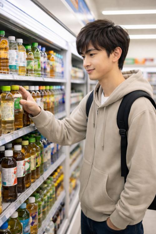 午後9時13分、井上氏が1人で入店。飲料コーナーに向かう。