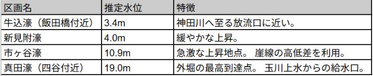【資料:外堀各区画の推定水位(T.P.:東京湾平均海面基準)】