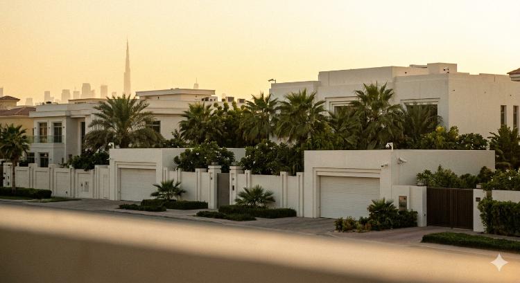 【写真2】ドバイ郊外の高級住宅街に建つ、海渡容疑者の拠点。周囲の豪邸に紛れ、その閉鎖的な壁の向こうで、日本人女性たちの「選別」が行われていた(文潮オンライン取材班・望遠レンズで撮影)