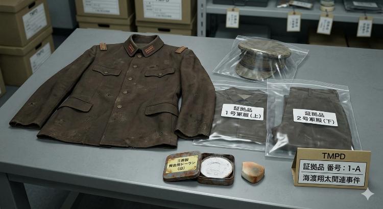 【写真】海渡容疑者の拠点から押収された旧日本軍風の軍服一式。深夜の施設内で「幽霊」を装い、連れ去り時の目撃を回避するために使用されたとみられる(警視庁提供)