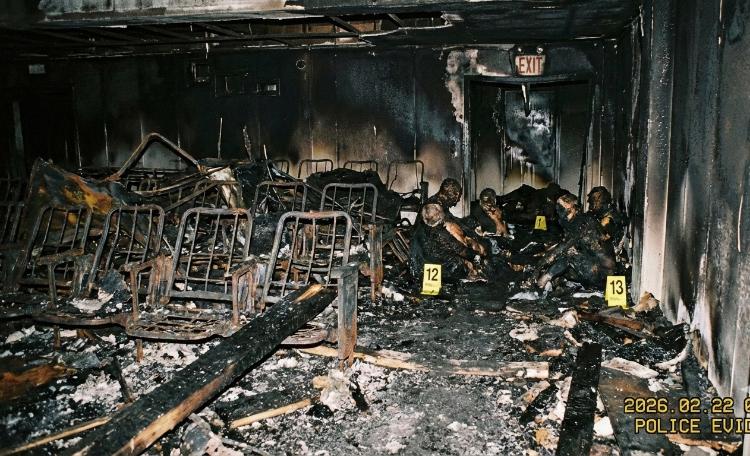 劇場の全非常口六箇所が、外部よりチェーン及び南京錠にて施錠されていた形跡あり。客席中央部及び舞台袖に、ガソリンと推定される引火性液体が散布され、ライターにより着火されたものと断定。