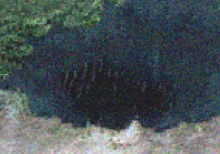 図2の画像だけでは、場所を特定することは困難であると考えられる。対比物がないことから、被写体となる岩壁の規模の推測もできていない。また、写真中央にある洞窟様の場所を拡大し明るさ調整をすると、細かな白いひも状のものが確認できた。(図3)