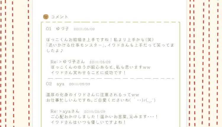 また、 「追いかける仕事モンスター」のイラスト画像を閲覧できなかったブログ訪問者の書き込みと、管理者のコメントも注目に値する。(図2-4)
