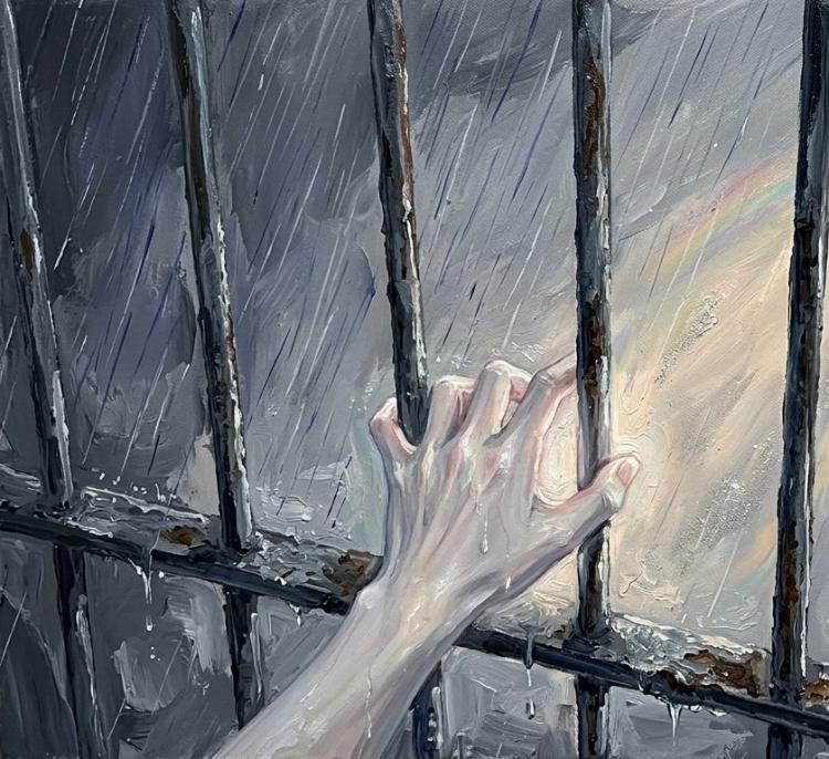 雨に濡れた鉄柵を掴む。冷たいはずの金属が、今はなぜか命を持っているかのように温かい。この向こう側の虚無へ行けば、僕は、本当の僕になれる。