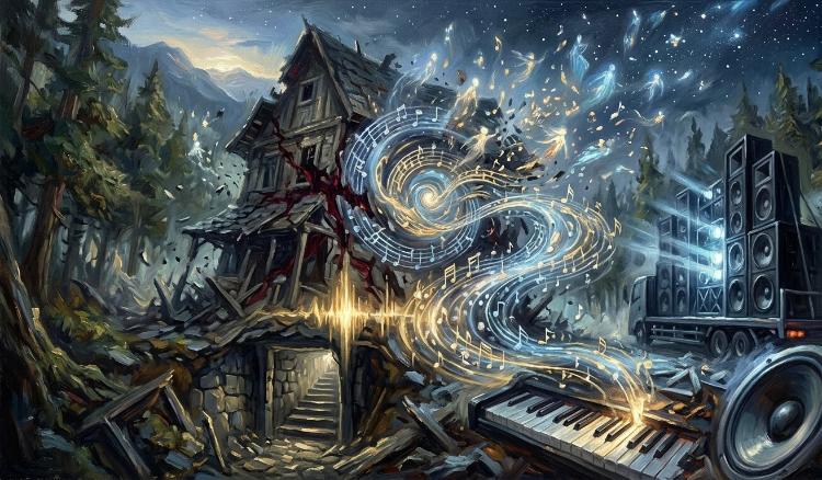僕のピアノの旋律が、化け物じみたアンプで増幅され、巨大な振動となって古民家の地下へ突き刺さっていく。
