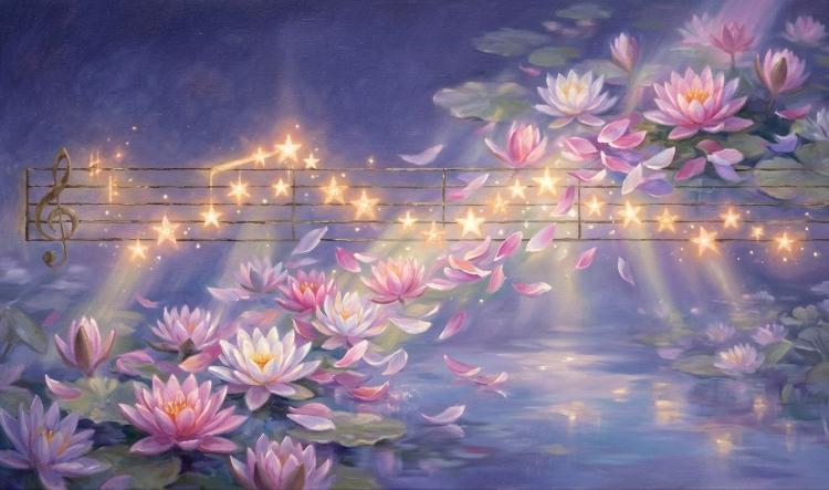 シズヤがタブレットで描いたジャケットイラストを読み込む。五線譜の周りに、睡蓮が咲き乱れていると、シズヤが教えてくれた。