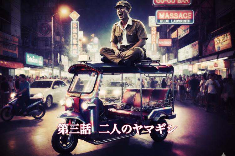 喧騒のパタヤの街を駆け抜ける一台のトゥクトゥクが、「三人の男女」と「床に転がる男」、そして「屋根の上の幽霊」という、歪な五人組の影を長く引き延ばしながら、混沌の夜の奥へと消えていった。