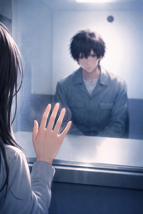 白い壁と、床に固定された椅子。中央には分厚いアクリルボードがあって、向こう側とこちら側を、きれいに分断している。天井の隅に、小さな黒い点——おそらく録音用のマイクに違いない。