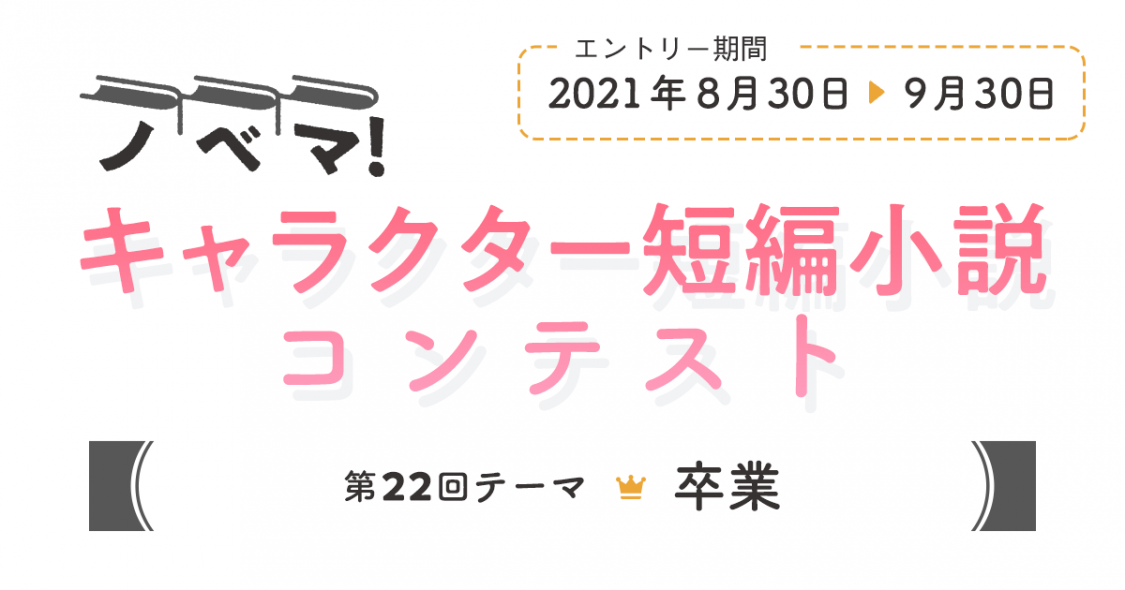 | 応募方法 | STEP1 エントリーしたい作品の【作品編集】から、【設定】画面のコンテスト応募、ノベマ!第22回キャラクター短編小説コンテストを選択します。 STEP2 エントリーする作品のあらすじを入力してください。 STEP3 ページ最下部の【設定を保存する】ボタンを押すとエントリー完了です。
