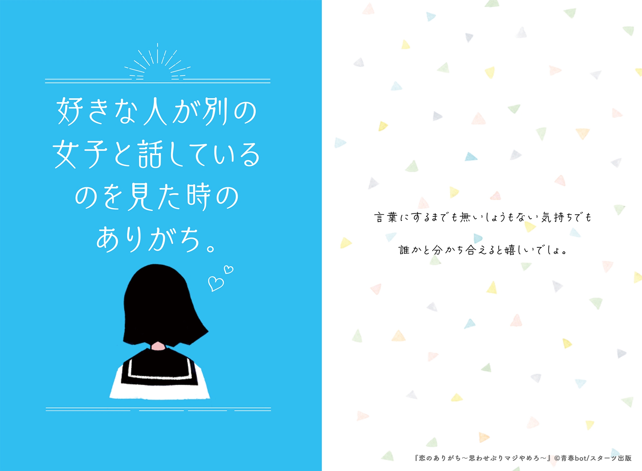 青春botと申します。前作『恋のありがち』を手に取ってくださった皆さま、本当にありがとうございます。