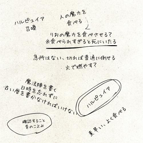 里桜は、その本を開こうとして、あるページに紙が挟まっていることに気がつく。そのページには‘ハルピュイアの創造’と書かれている。シドとレイベスはそのページに釘付けになる。しかし、里桜はメモ書きをじっと見る。